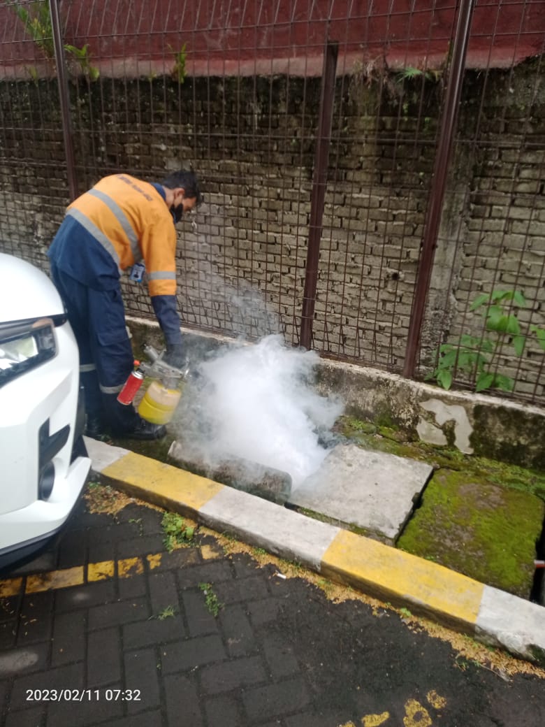 Oleh karena itu,telah dilakukan Spraying disinfektan dan pest control ke area-area fasilitas umum , diantaranya dengan melaksanakan penyemporan fogging